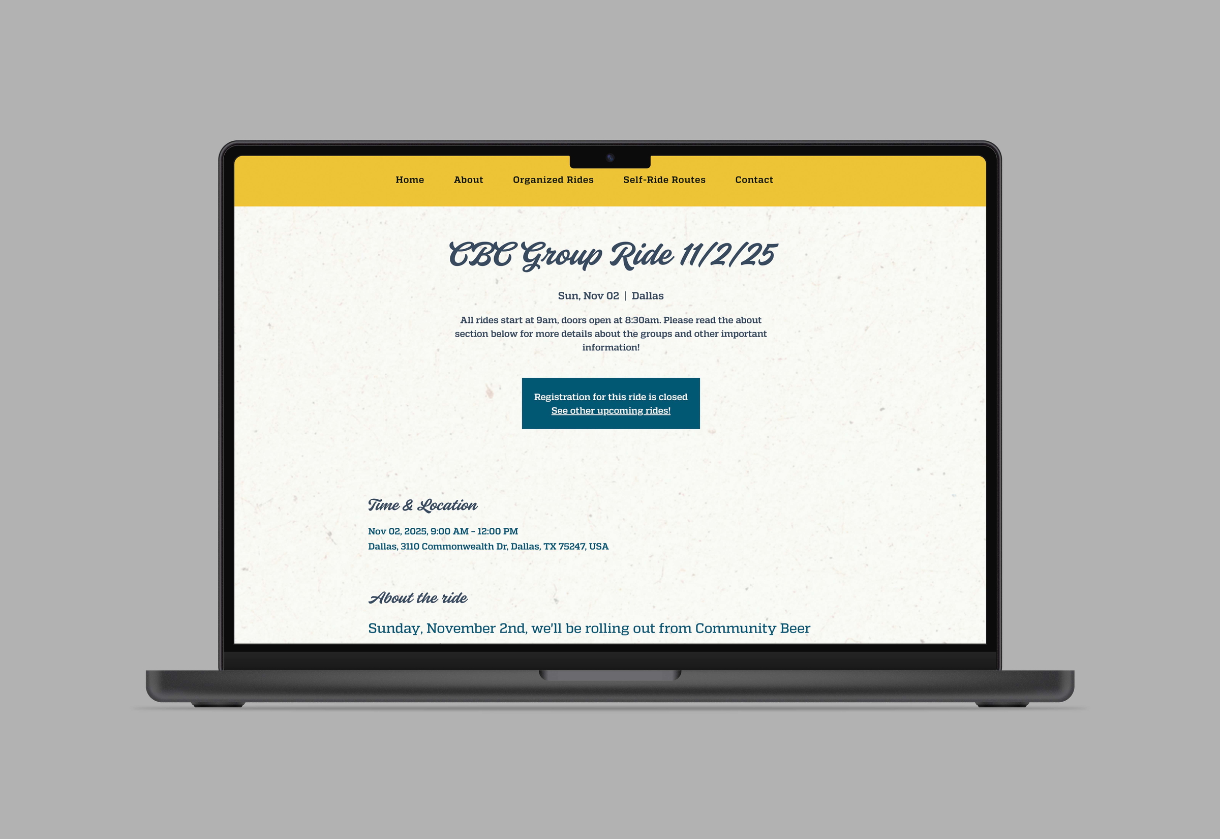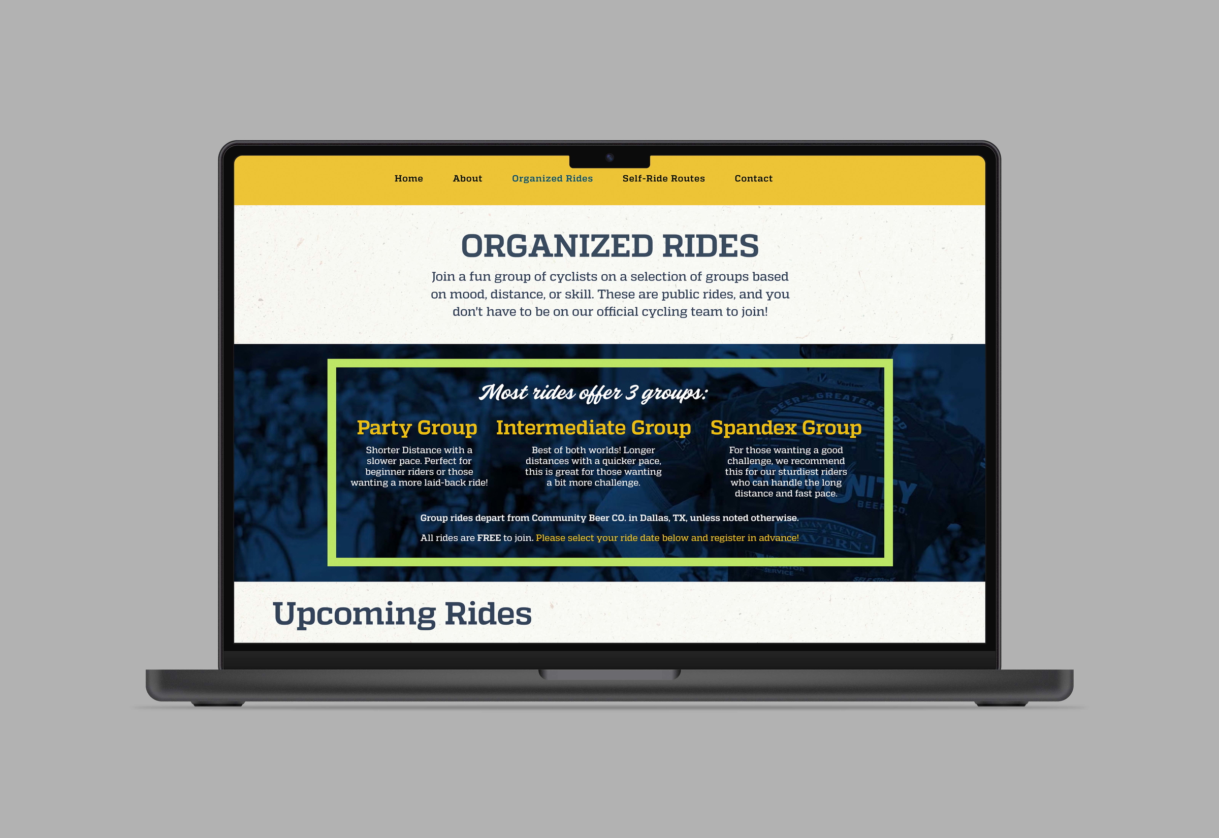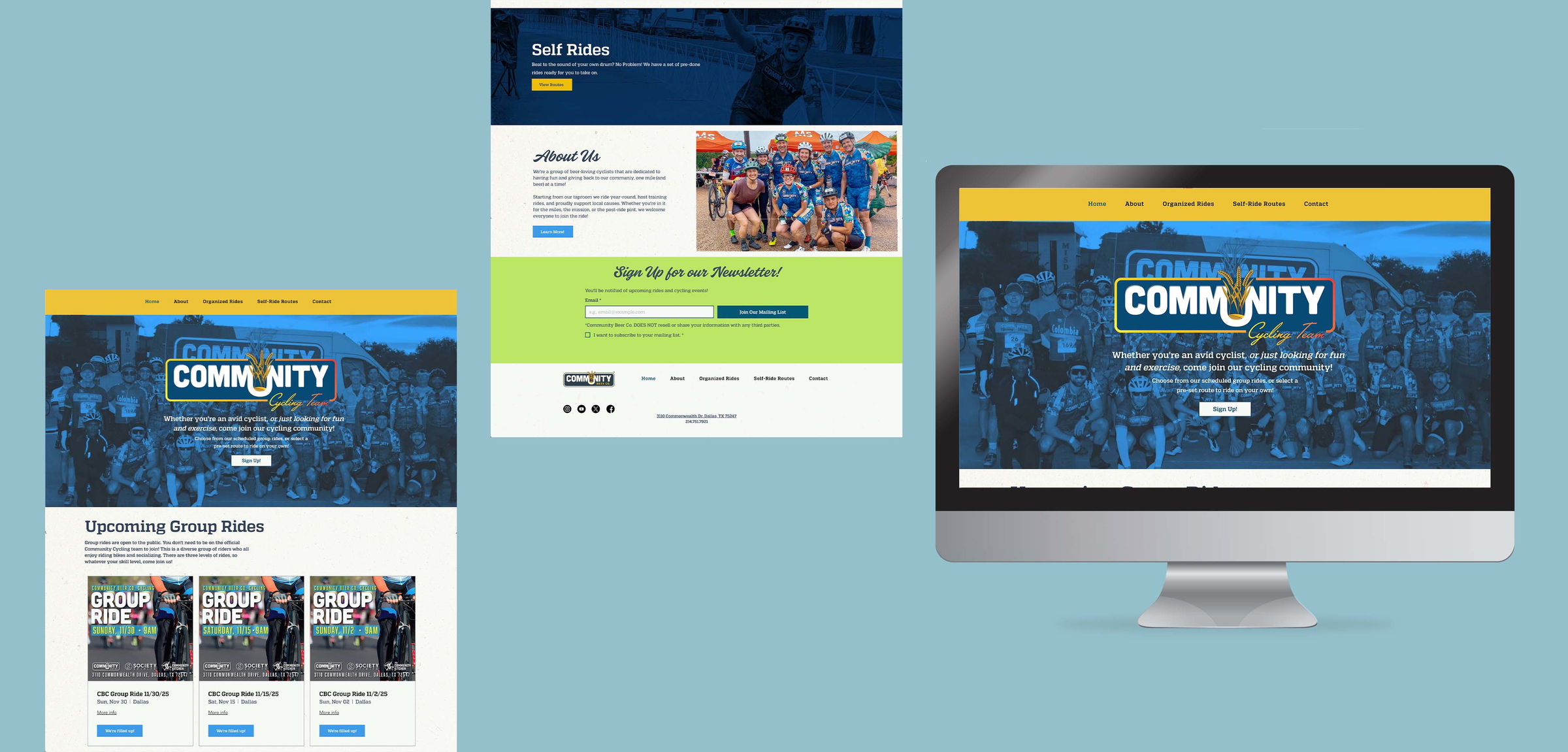 With the growing support of our cycling team, it was time to have it come to life with its own website! With the assistance of the Wix website builder I helped bring to life this project by designing and laying out the whole website. I decided to go for a simple, straight-forward, design that focused more on getting the information out there in a way that would be easily accessible for our wide range of cyclists!